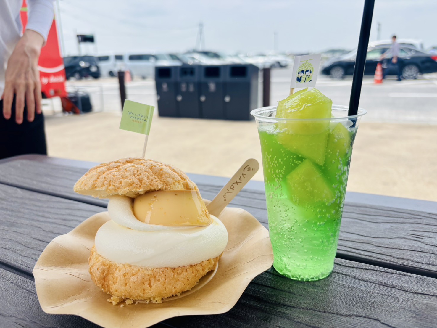 メロンパンサンドはソフトクリームとプリンが挟まっている「絶対おいしいやつ」でした。