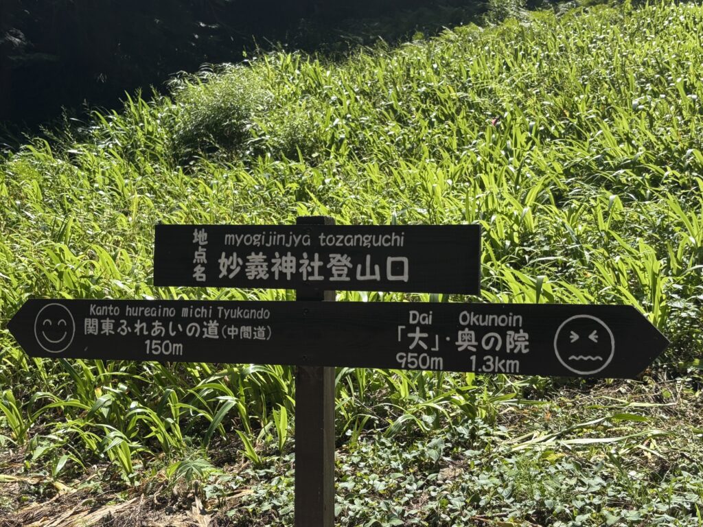 「大」・奥の院への道のりが険しいことが顔文字から伝わってくるかわいい看板ですw