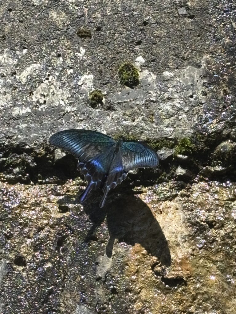 立派なチョウがしたたる水を求めて壁面をヒラヒラしていました。